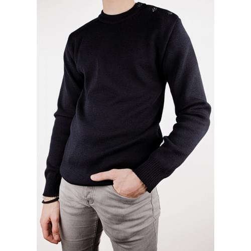 Il est généralement tricoté avec plusieurs brins d'une laine fine, lourde et très robuste, en mailles très serrées pour empêcher le vent de traverser. Les rayures et l'épaule boutonnée sont conçues pour augmenter les chances du marin d'être sauvé s'il tombait à la mer...